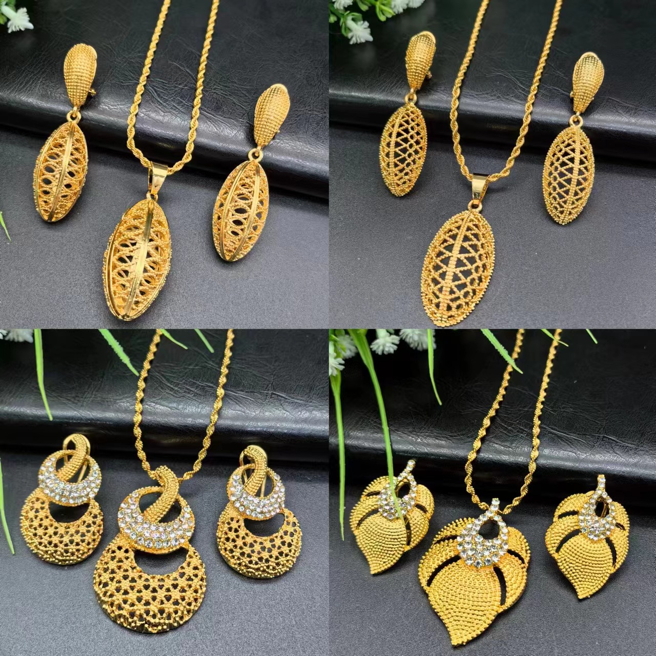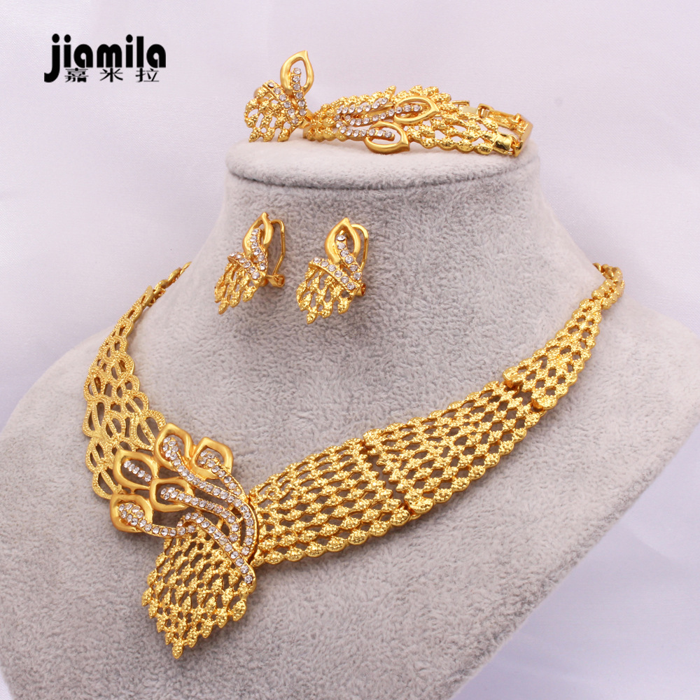 Hot Sale recommend Dubai 24k Gold Plated Necklace Bracelet Earrings suit Middle East Africa Bride Jewelry Wholesale