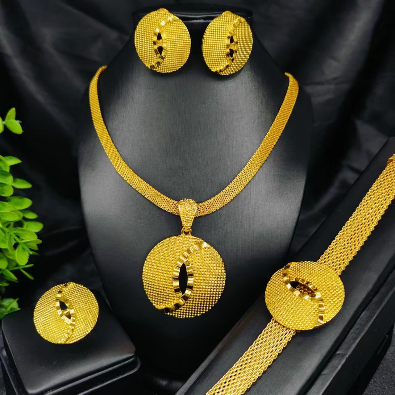 Middle East Cross-Border Best-Selling Jewelry Set Dubai Jewelry Women's 24K Gold-Plated Necklace Bracelet Earrings Ring Four-Piece Set