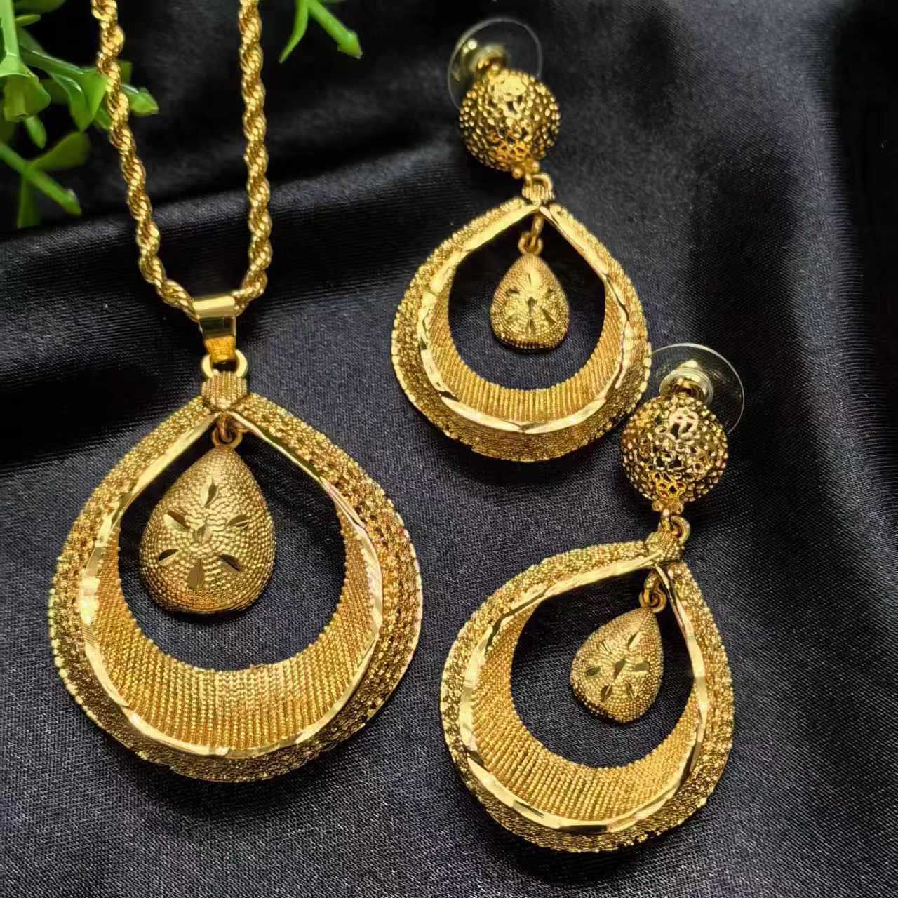 Dubai 24k gold-plated bride necklace set India Nigeria sand gold pendant jewelry source manufacturers wholesale