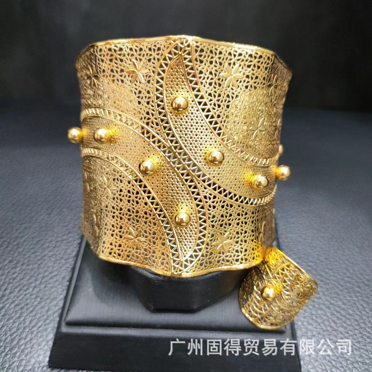 Two Piece Middle East Dubai Exaggerated Hollow Hollow Bracelet Women's Ring Indian Luxury Bridal Jewelry Wedding Party