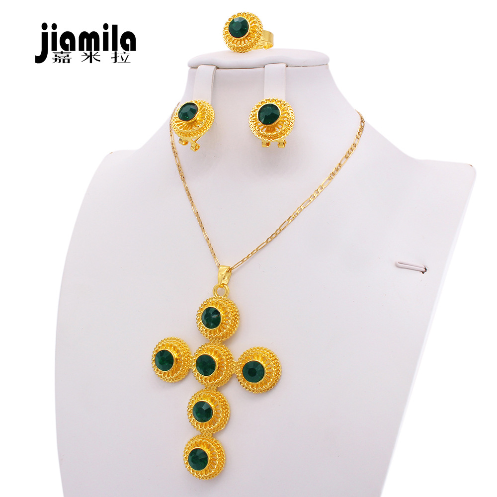 Middle East Arabian Wedding Dubai Jewelry Set Fashion Pendant Necklace Earrings Bracelet Ring for Women Gift