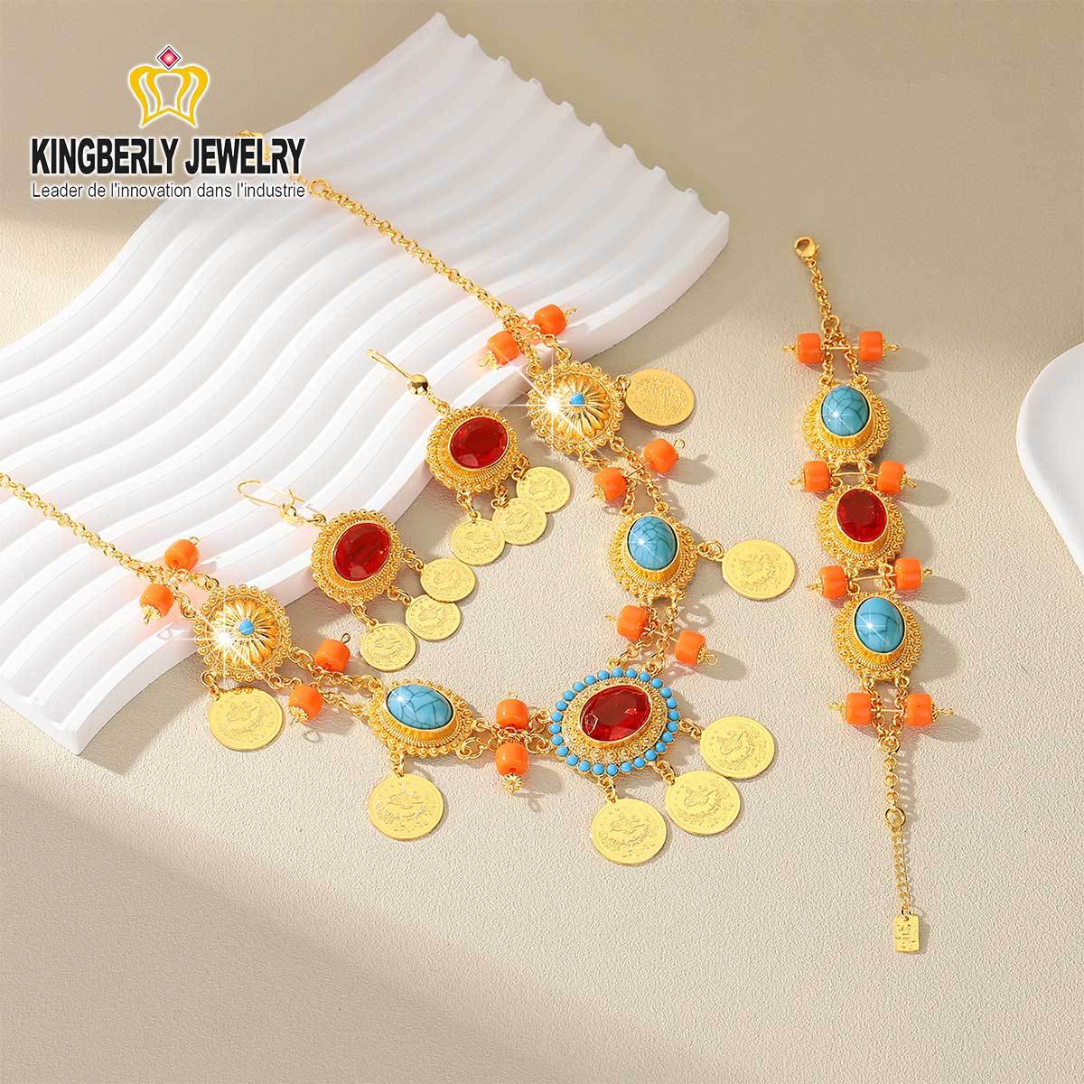 Cross-Border Dubai 18K Gold-Plated Middle Eastern Bridal Banquet Fashion Necklace Bracelet Earrings Ring Set High-End Exaggerated