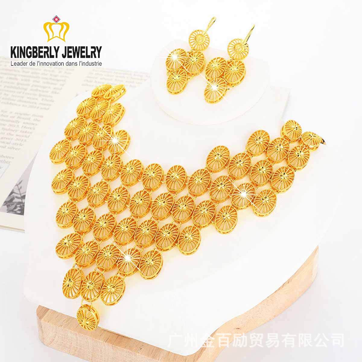 Cross-Border Dubai Bride Ancient Gold Jewelry Round Flower Set Pendant Earrings Necklace Nigerian Women's Wedding