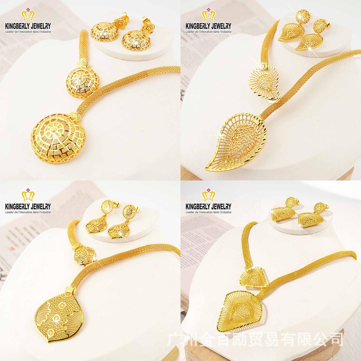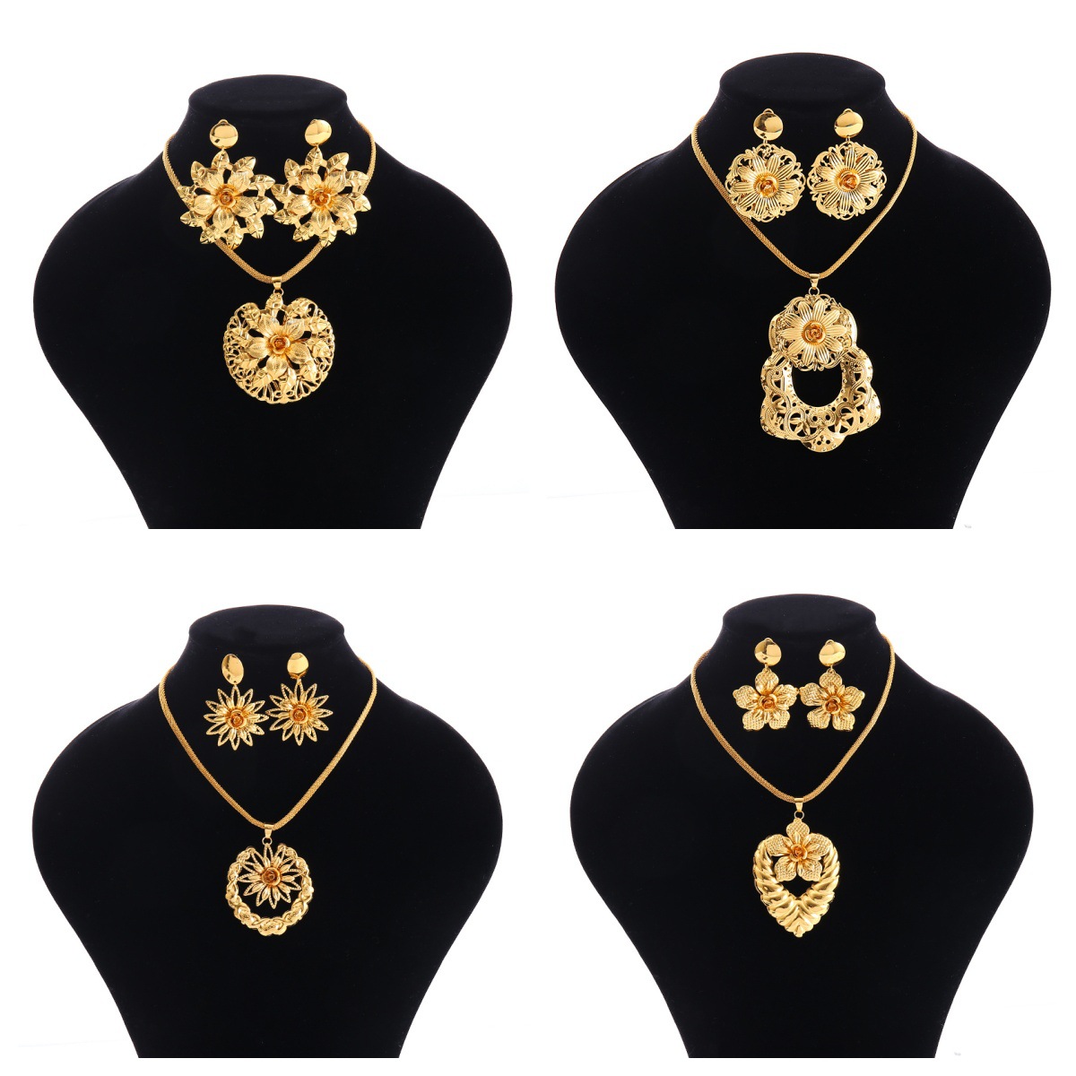 24K Gold Dubai Explosions Bride Two-Piece Flower Jewelry African Gold Plated Necklace Earrings Color Preservation Jewelry