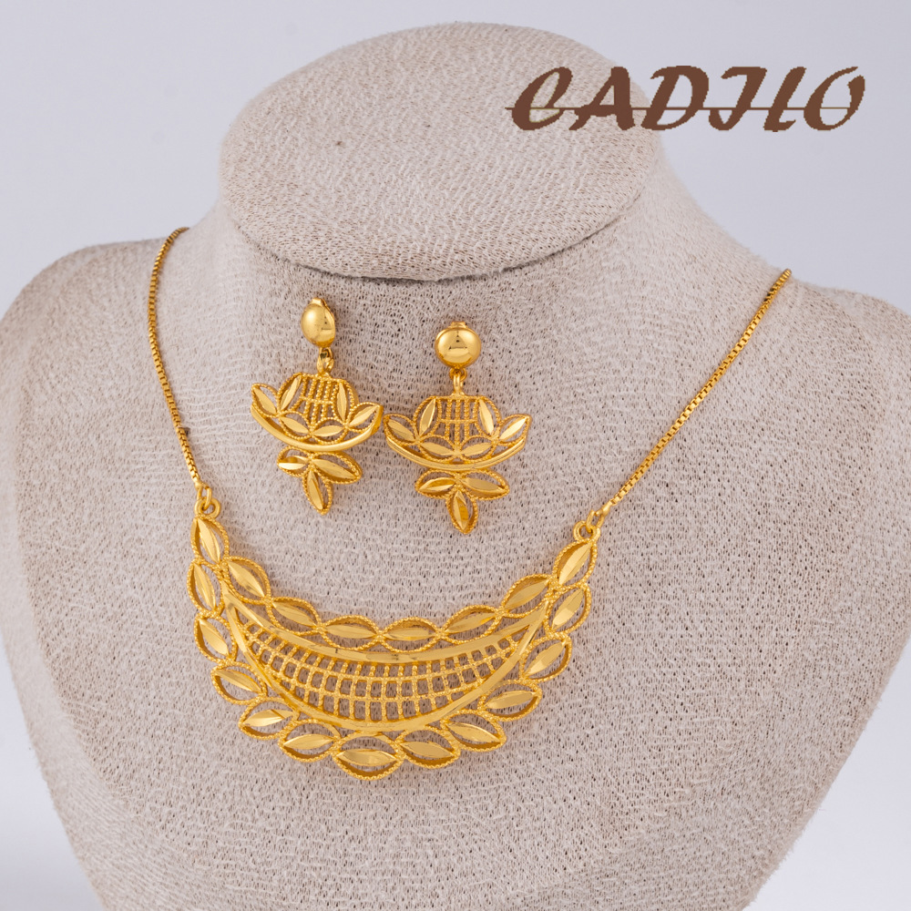 CADILO Cross Border Europe and America Dubai Saudi Arabia 24K Gold Jewelry suit Nigeria Women Necklace Earrings suit