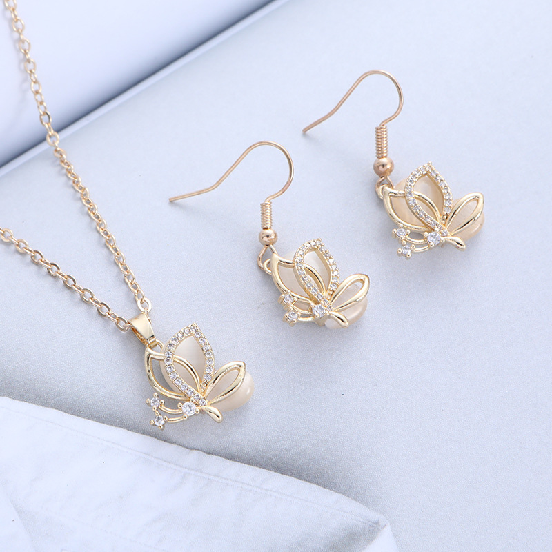 Jewelry suit Niche Ins Style High-end Fashion Dubai Gold Plated Copper Micro Set Zircon Necklace Earrings Two-piece Set