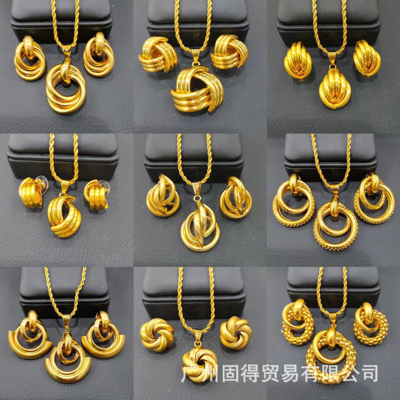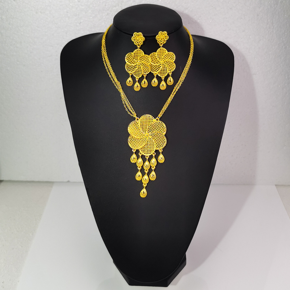 Dubai 18K Gold Bridal Jewelry Jewelry Set African Middle Eastern Women's Necklace Earrings Two-Piece Set Cross-Border Wholesale