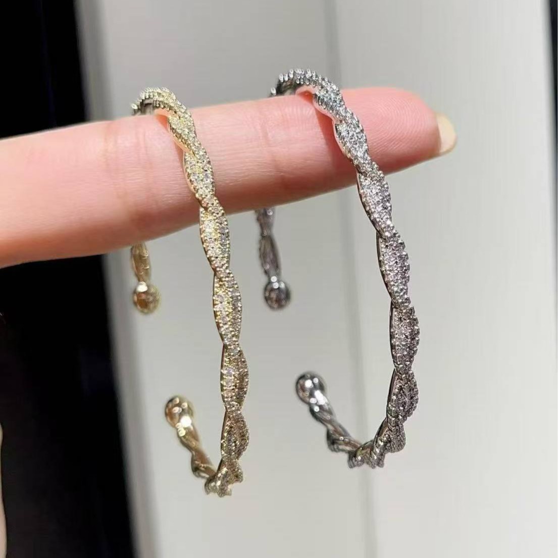 Twisted Rope Open Full Zirconium Bracelet, Light Luxury Sparkling Bracelet, Fashionable and Exquisite Versatile Accessories, Middle Eastern Dubai Gold-Plated Jewelry
