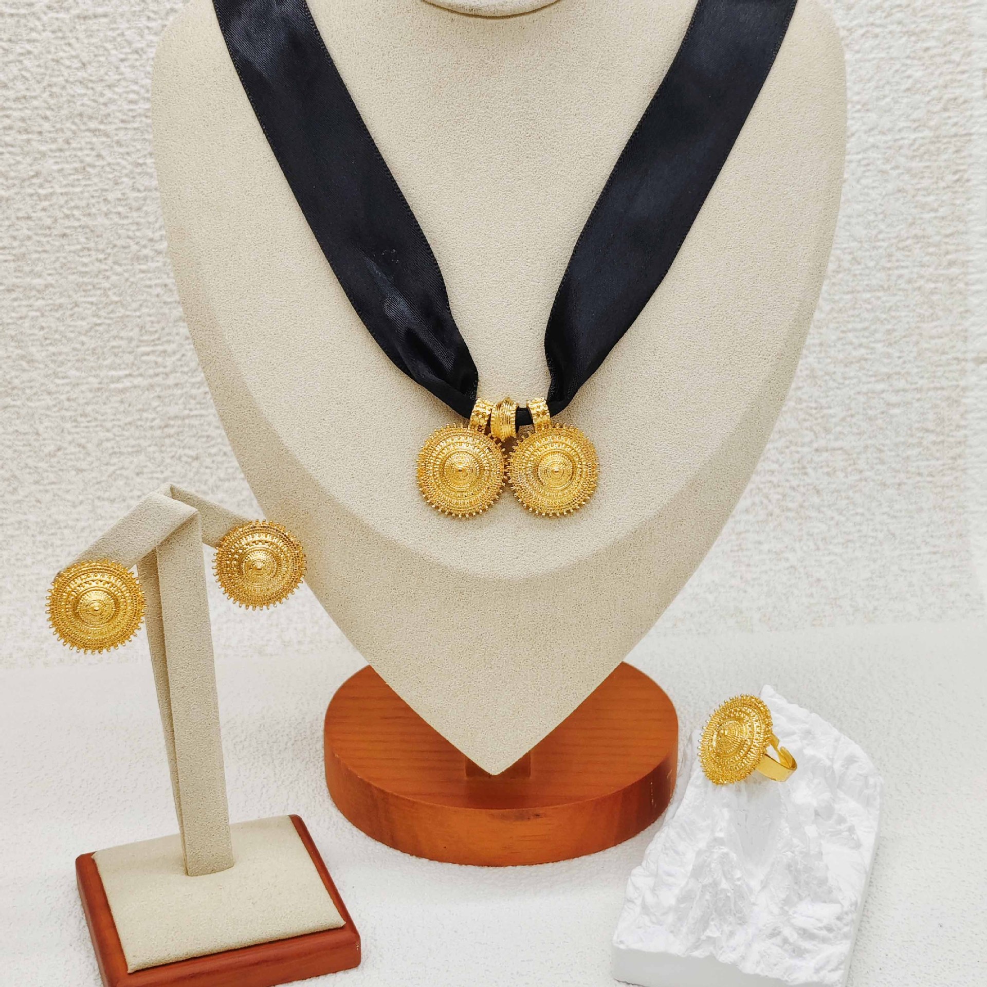 Camilla Dubai 24K Gold Plated Earrings Necklace Ring Women Jewelry suit Nigeria Three Piece Set