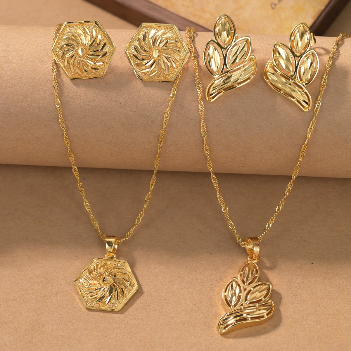 24K Electroplating Dubai Africa Europe and America Banquet Six Leaf Necklace Earrings suit Women Accessories Cross-border Wholesale Jewelry