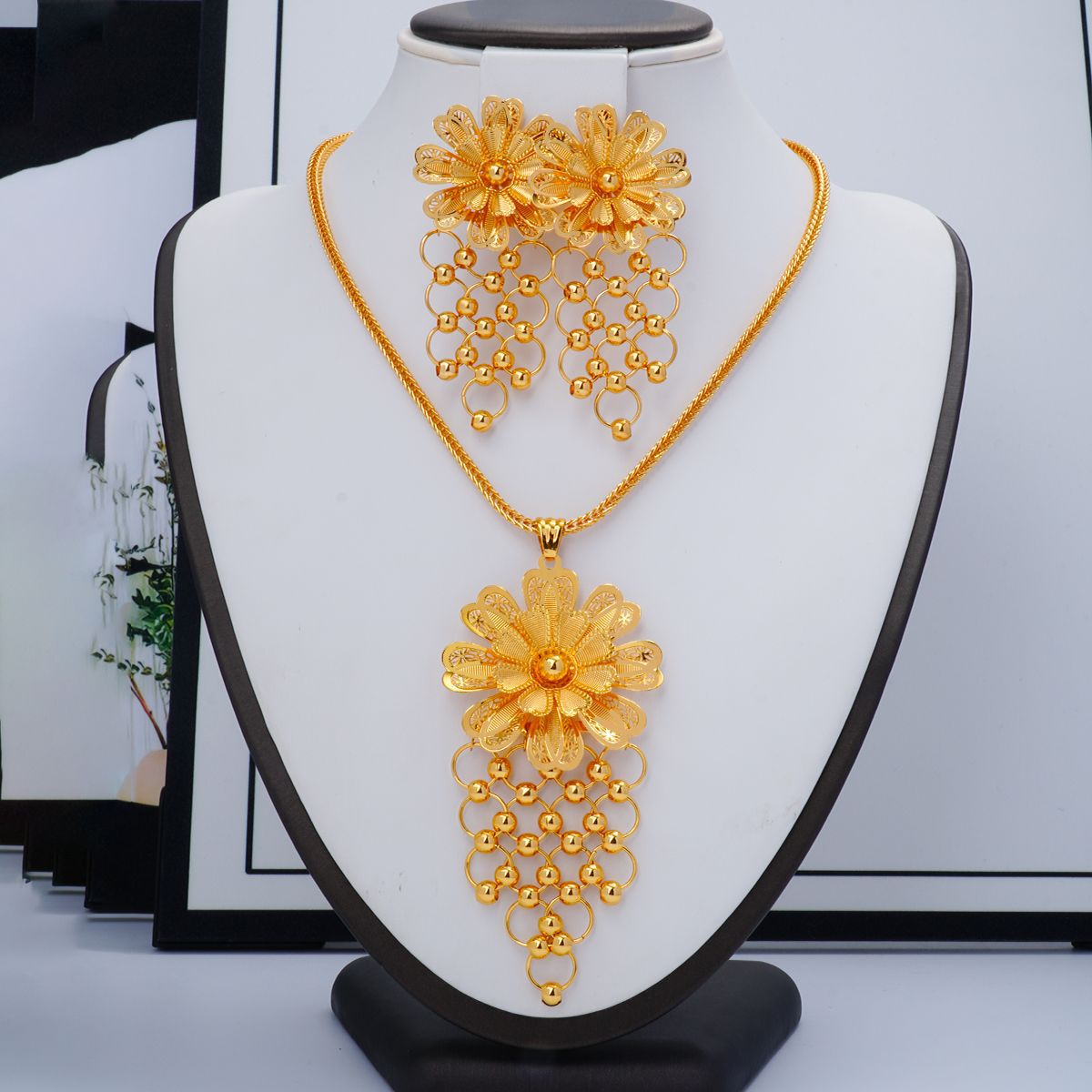 Middle East Dubai 24K Gold-Plated Jewelry Vietnamese Bridal Necklace Earrings Bracelet Ring Gold Placer Jewel