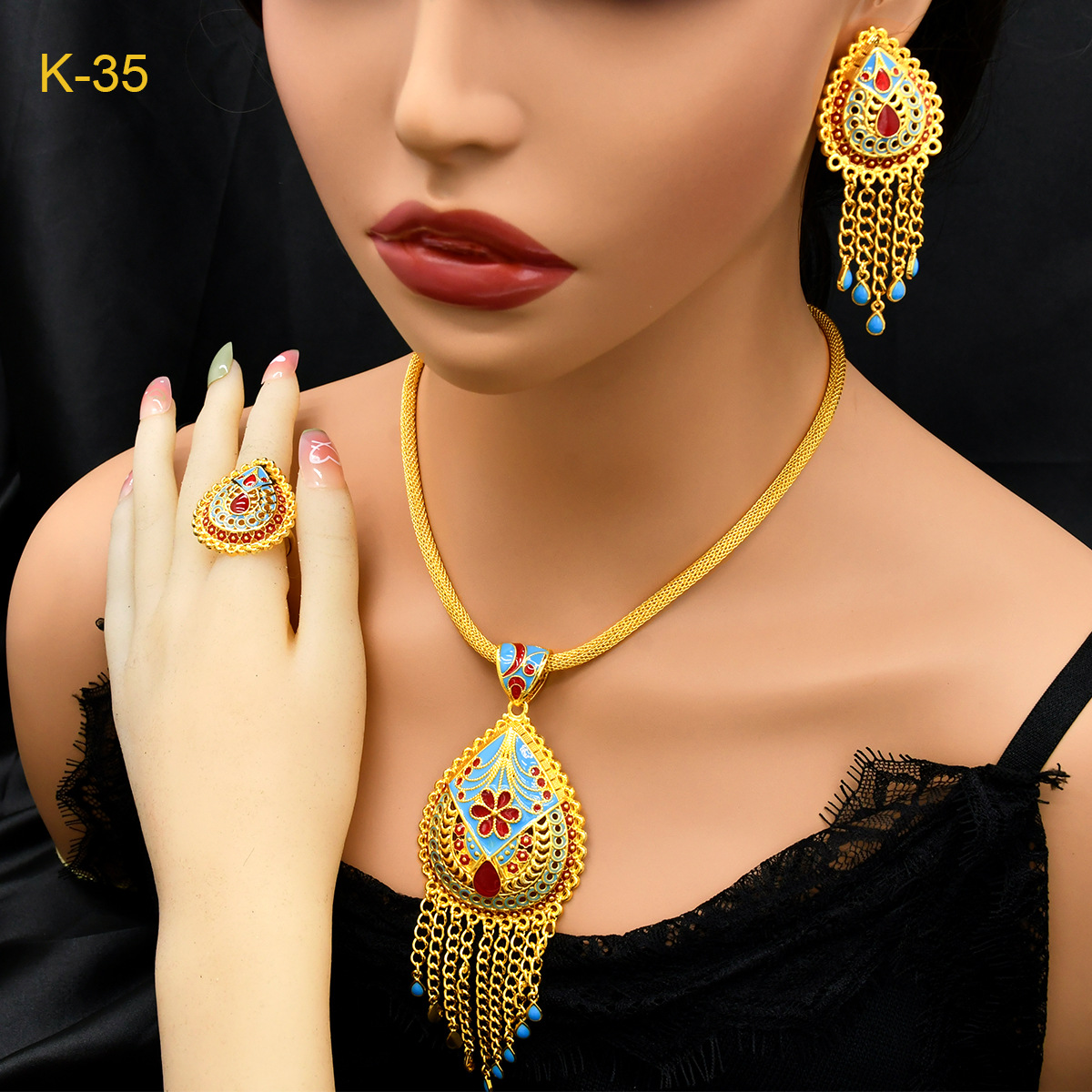 Middle East Dubai Gold-Plated Necklace Earrings Ring Set African Jewelry Nigerian Imitation Gold Jewelry Banquet Jewelry
