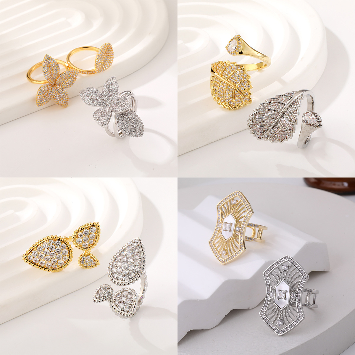 European and American style water drop ring women's retro court style diamond zircon ring adjustable diet finger ring trinkets