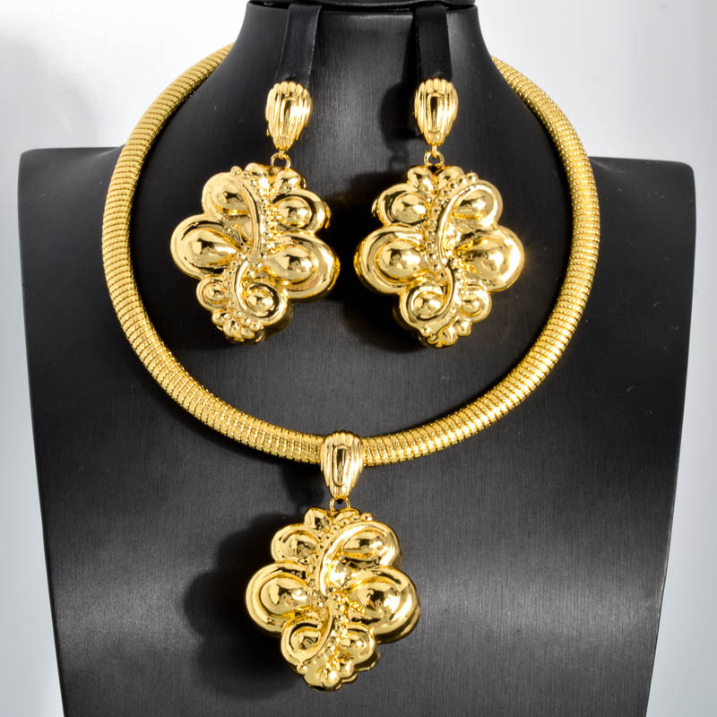 Hot Selling Middle East Dubai Imitation Gold Women's Necklace Earrings Jewelry Set Banquet Indian Bridal Necklace Jewelr