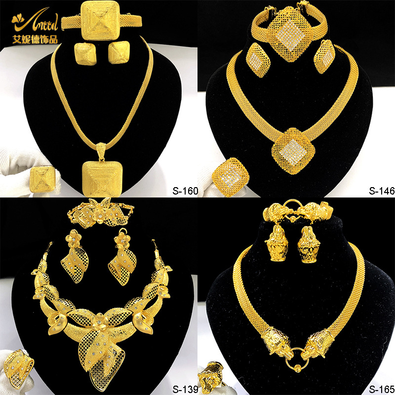 Dubai Hot Selling Alloy Pendant Jewelry Set Middle Eastern African Popular Necklace Earrings Bracelet Ring Four Jewelry