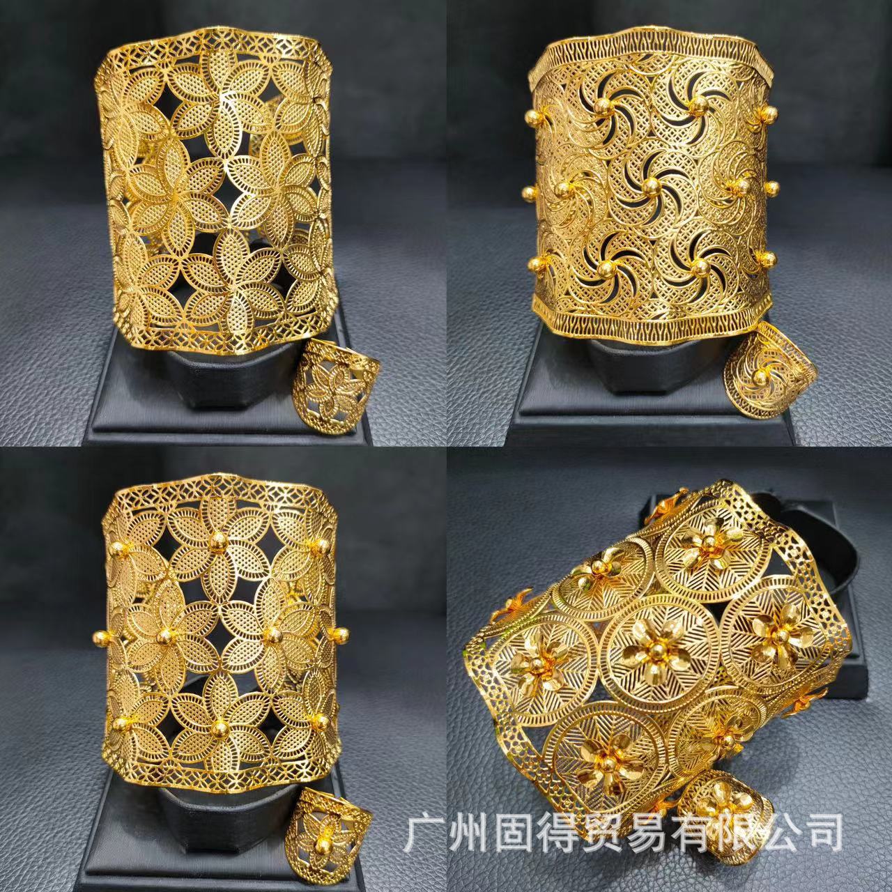 2023 New Open Flower Large Bracelet Ring Set European and American Dubai African Bride Sand Gold Bracelet Does Not Fade