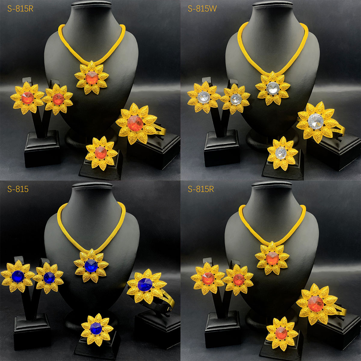 Dubai Middle East 24K Gold Jewelry Sand Gold Jewelry Flower Four-Piece Necklace Bracelet Ring Earrings Bridal Set