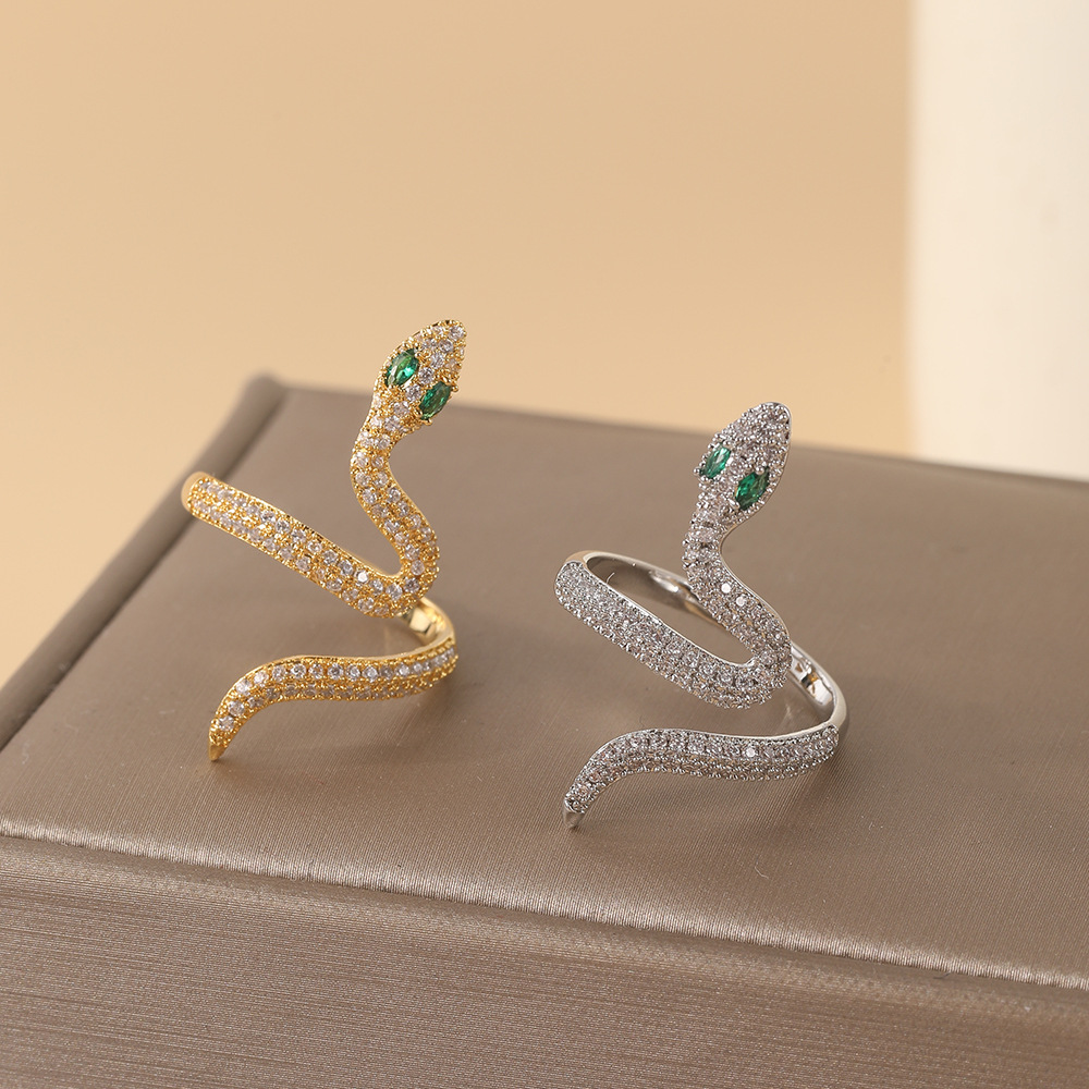 Design winding small snake ring women's personality fashion hip-hop wind food finger ring micro-inlaid zircon European and American cross-border jewelry