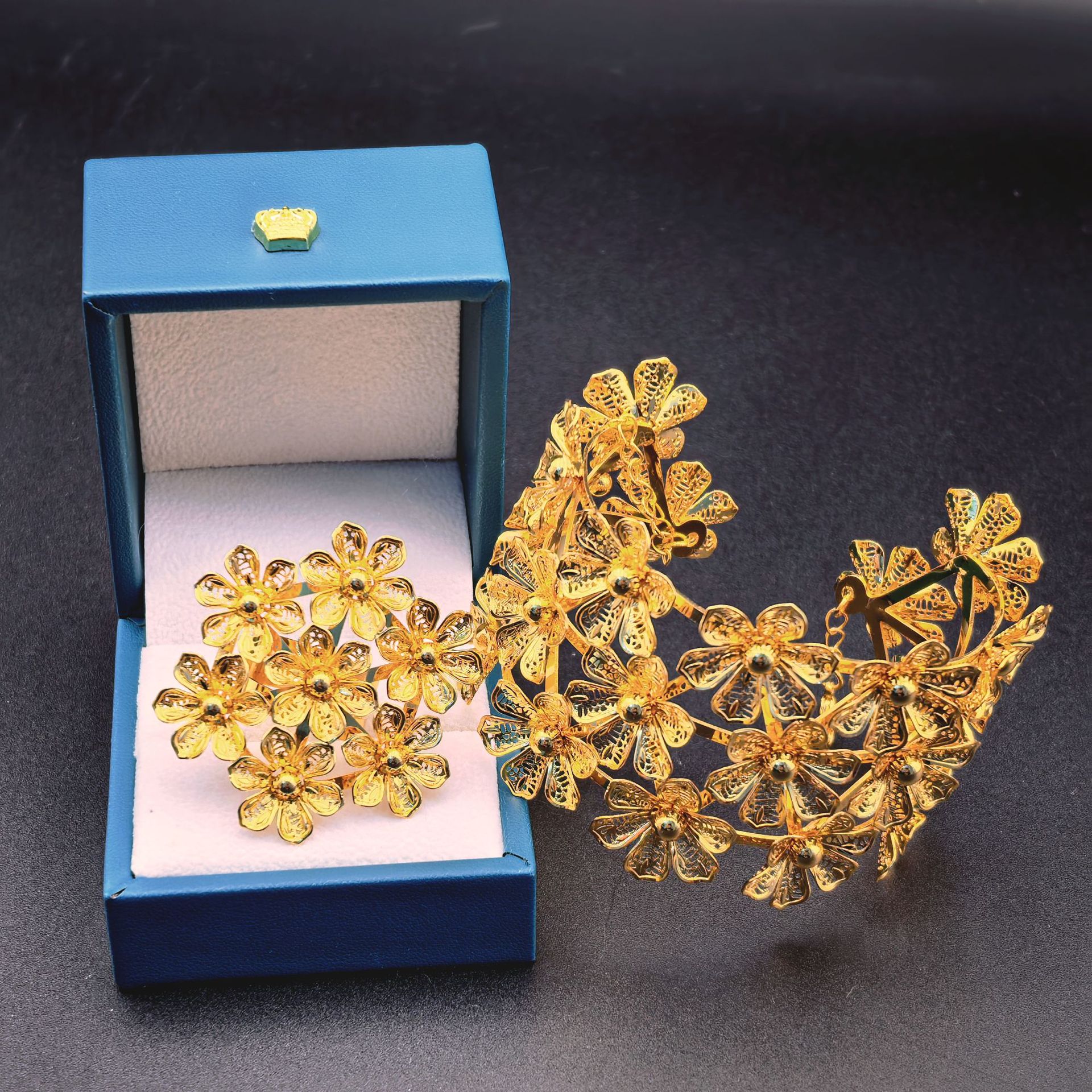 Middle East Gold Plated Flower Large Bracelet Ring Jewelry suit Nigeria Wedding Dubai Jewelry Jewelry Accessories