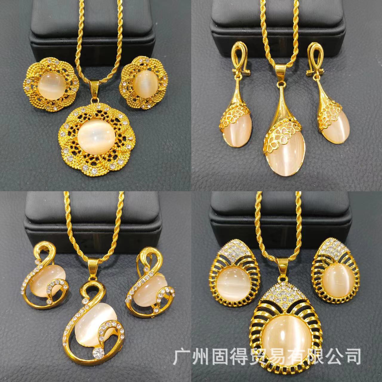 Cross-Border Hot Selling Middle East Dubai Jewelry Cat Eye Necklace Earrings Set African Bride Full Diamond Jewelry Set Wholesale