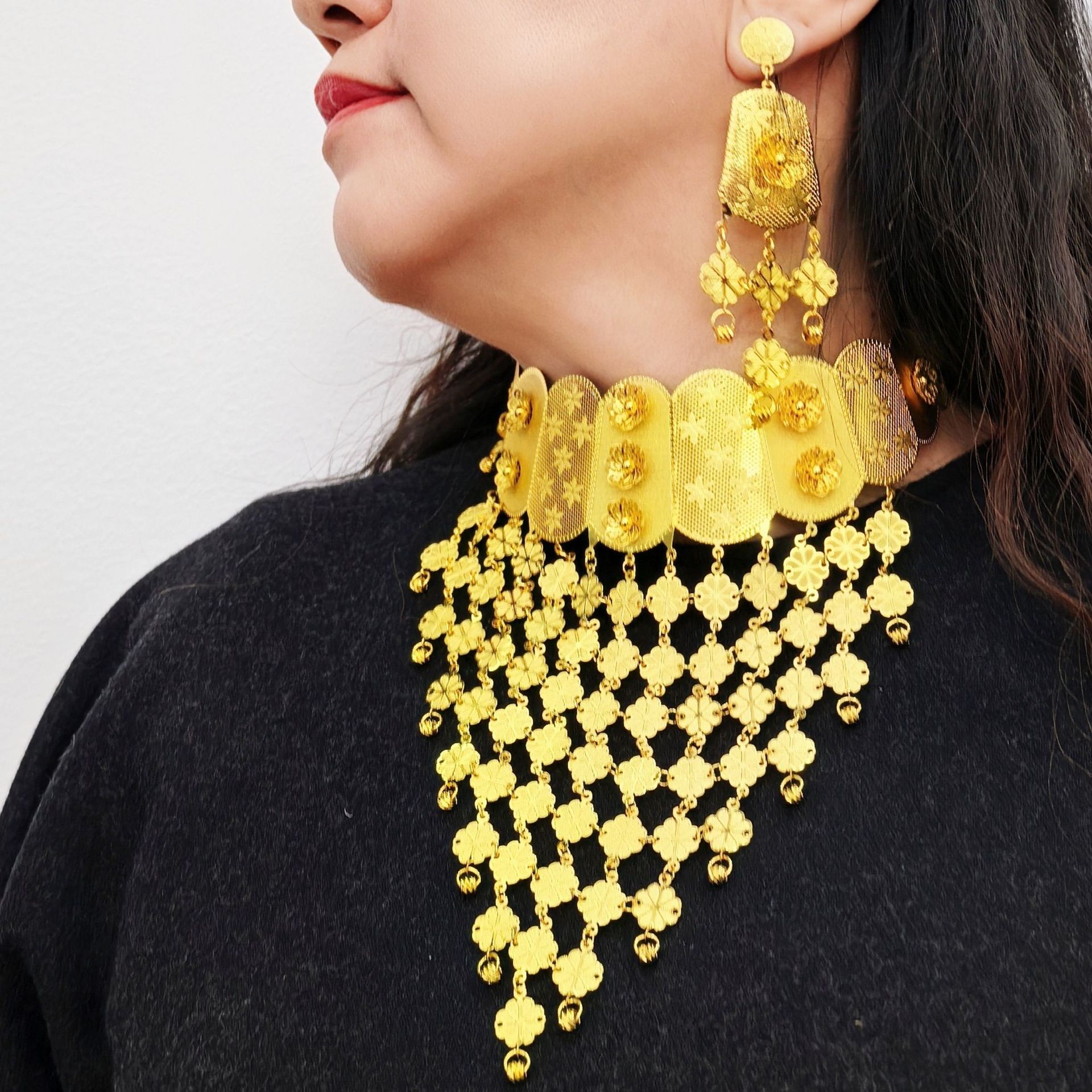 Dubai Gold-Plated Exaggerated Necklace Earrings Jewelry Set Bridal Wedding Supplies Middle Eastern Jewelry Accessories Wholesale