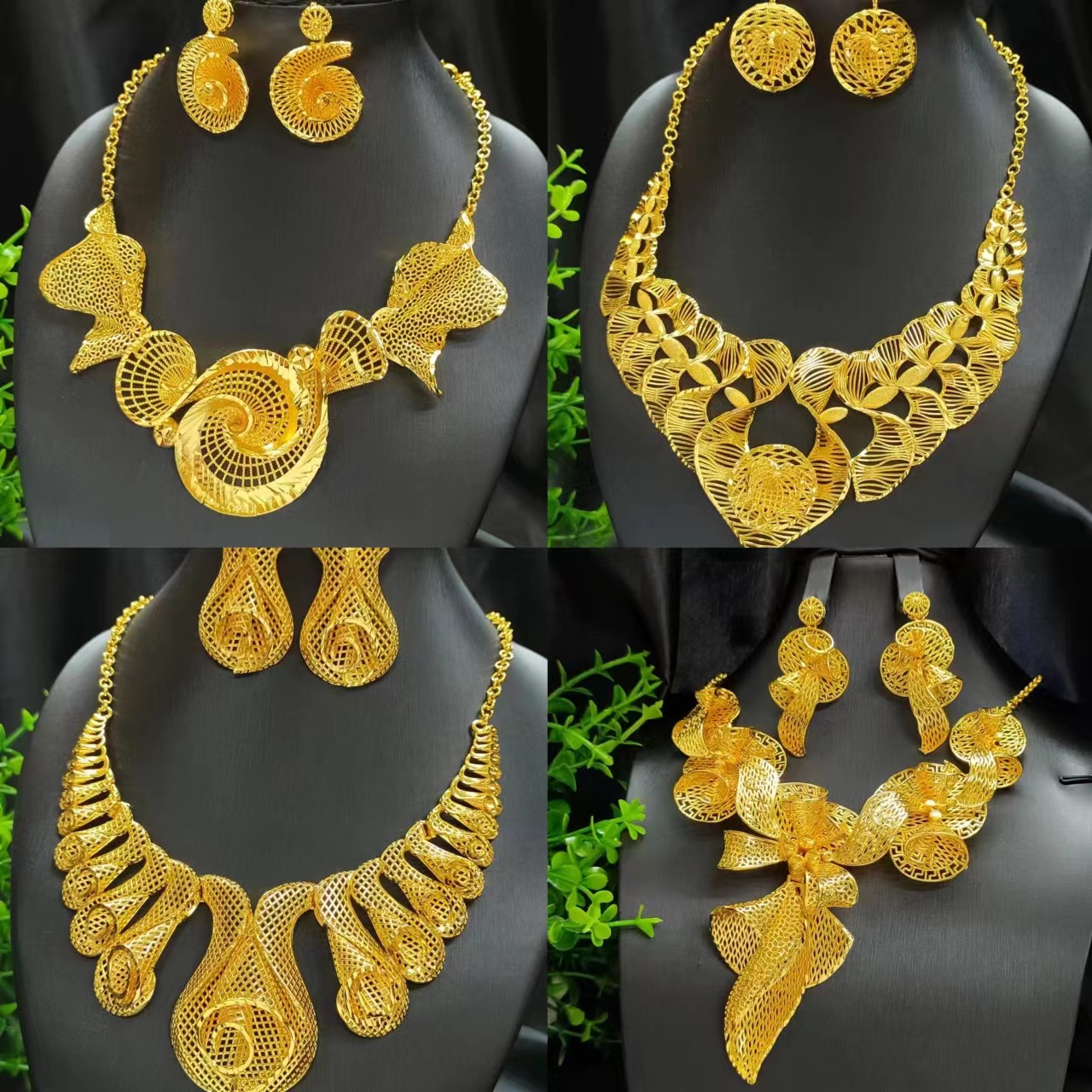 Middle East Dubai jewelry 2024jewelry set necklace earrings bracelet ring suit 24k gold jewelry wholesale