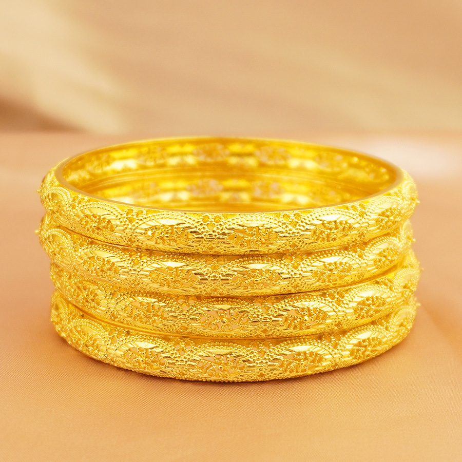 Wholesale 24K Gold Plated Bangles Middle East Dubai Wedding Nigerian Women's Bridal Sand Gold Bangles Jewelry Wholesale