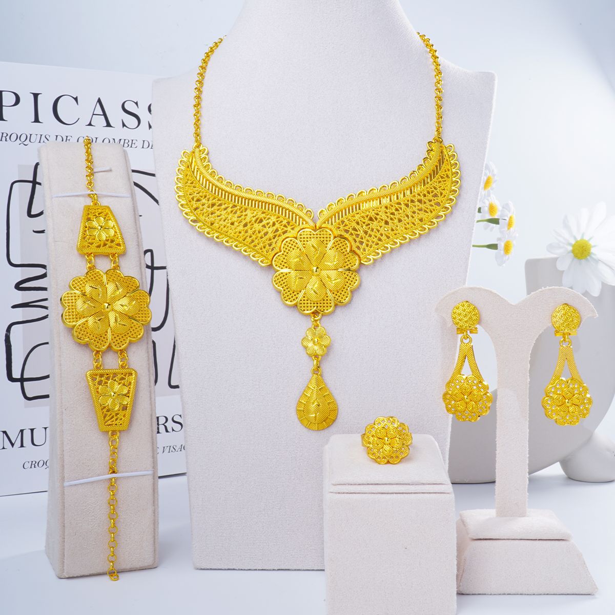 Cross-Border African Hot-Selling Four-Piece Necklace, Earrings, Bracelet, Ring, Middle East, India, Dubai Dinner Party Jewelry