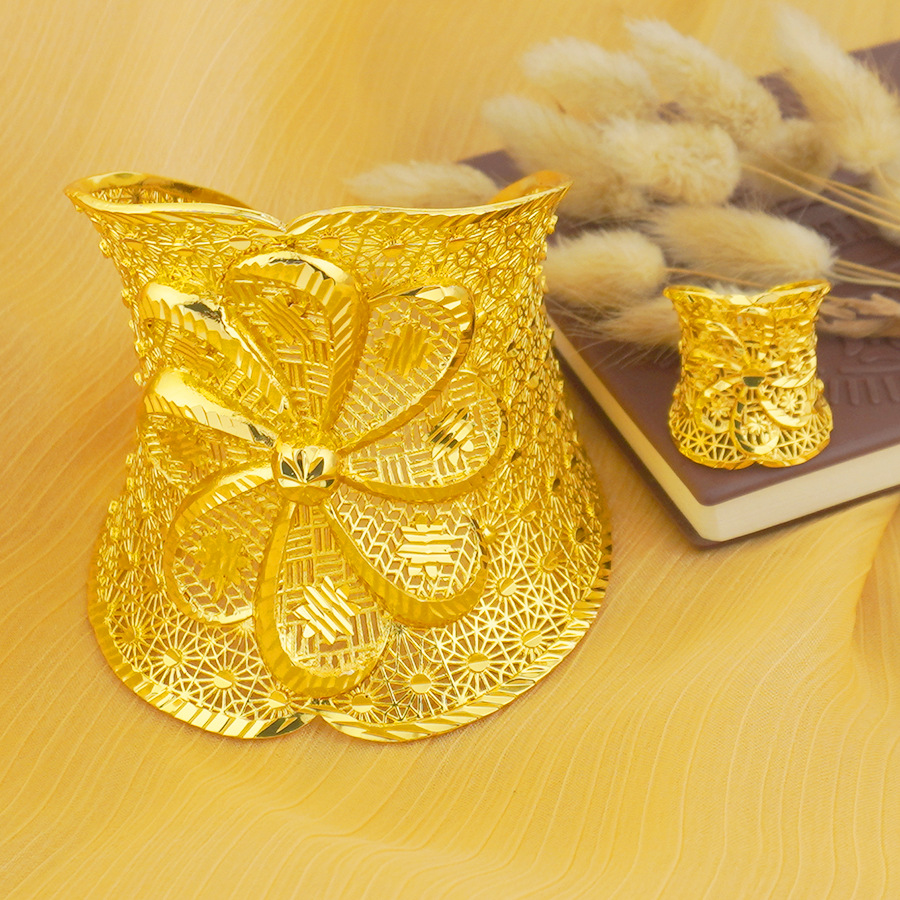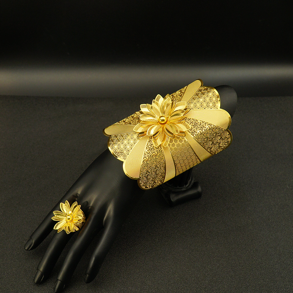 Middle Eastern Open Gold-Plated Non-Fading Rings, Bracelets, Jewelry, African Dubai Wedding Women's Jewelry Wholesale Flowers