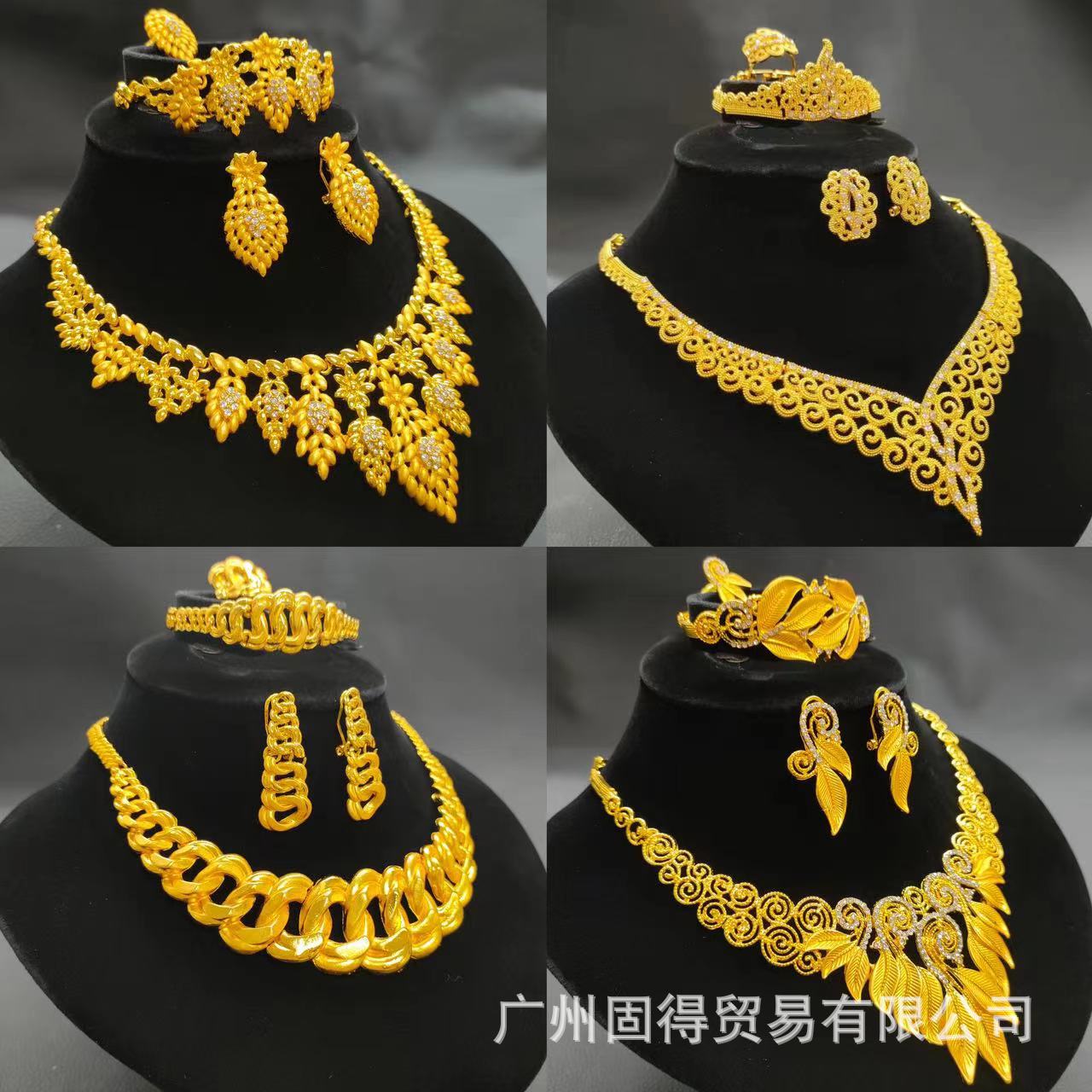 African Indian Bridal Jewelry Four-Piece Set 24K Gold Non-Fading Jewelry Necklace Earrings Ring Bracelet Jewelry