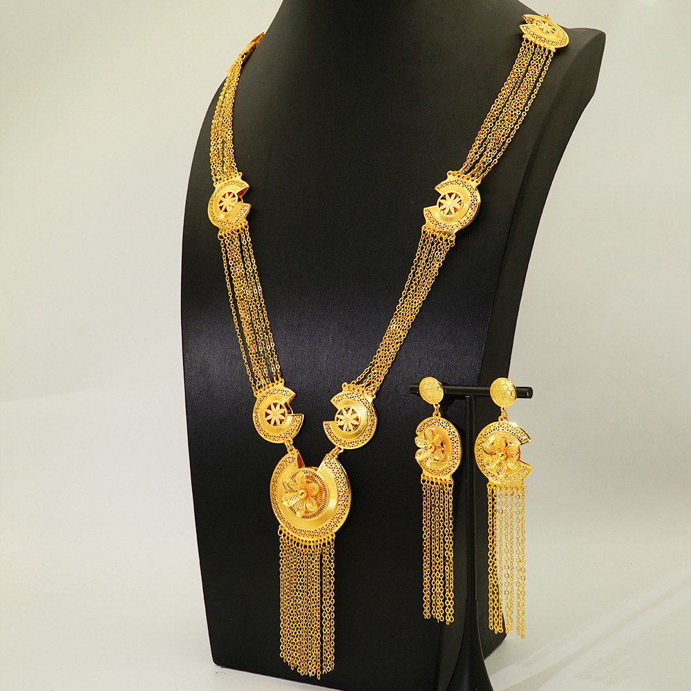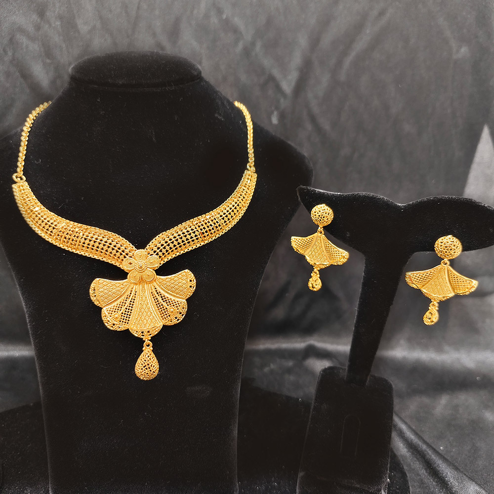 24k Gold Faux Gold Wedding Jewelry suit Dubai India Nigeria Bride Necklace Earrings