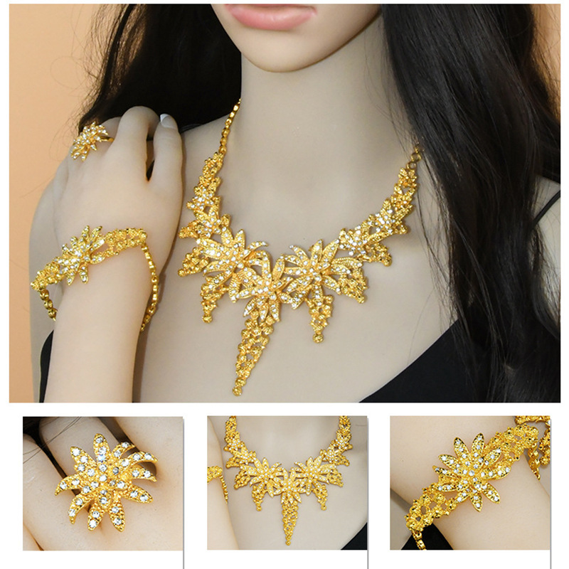 Middle East Dubai Jewelry suit Atmosphere Full Diamond Handmade Inlaid Zircon Necklace Earrings Bracelet Ring
