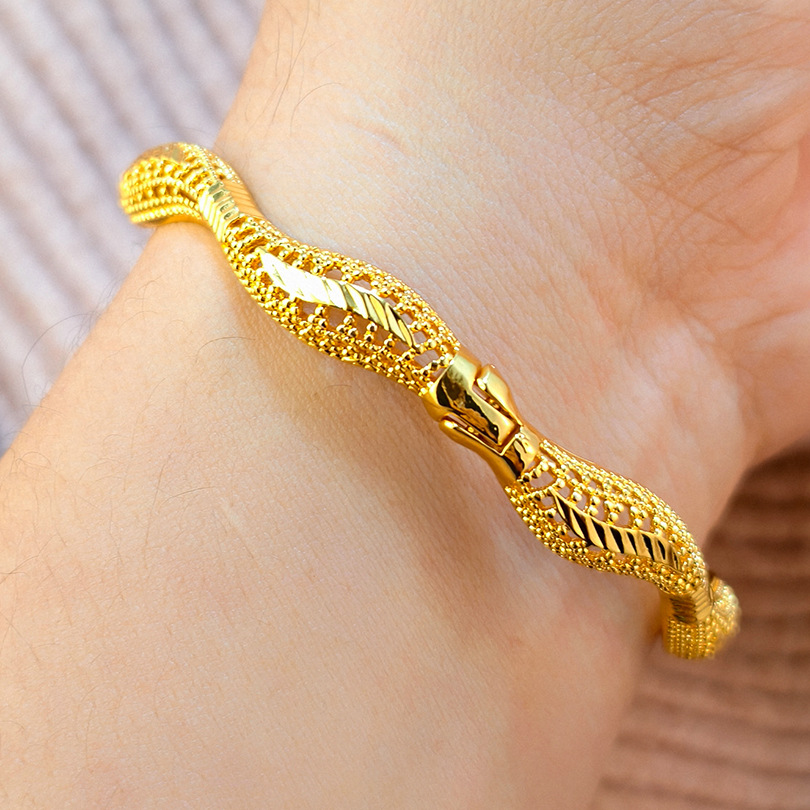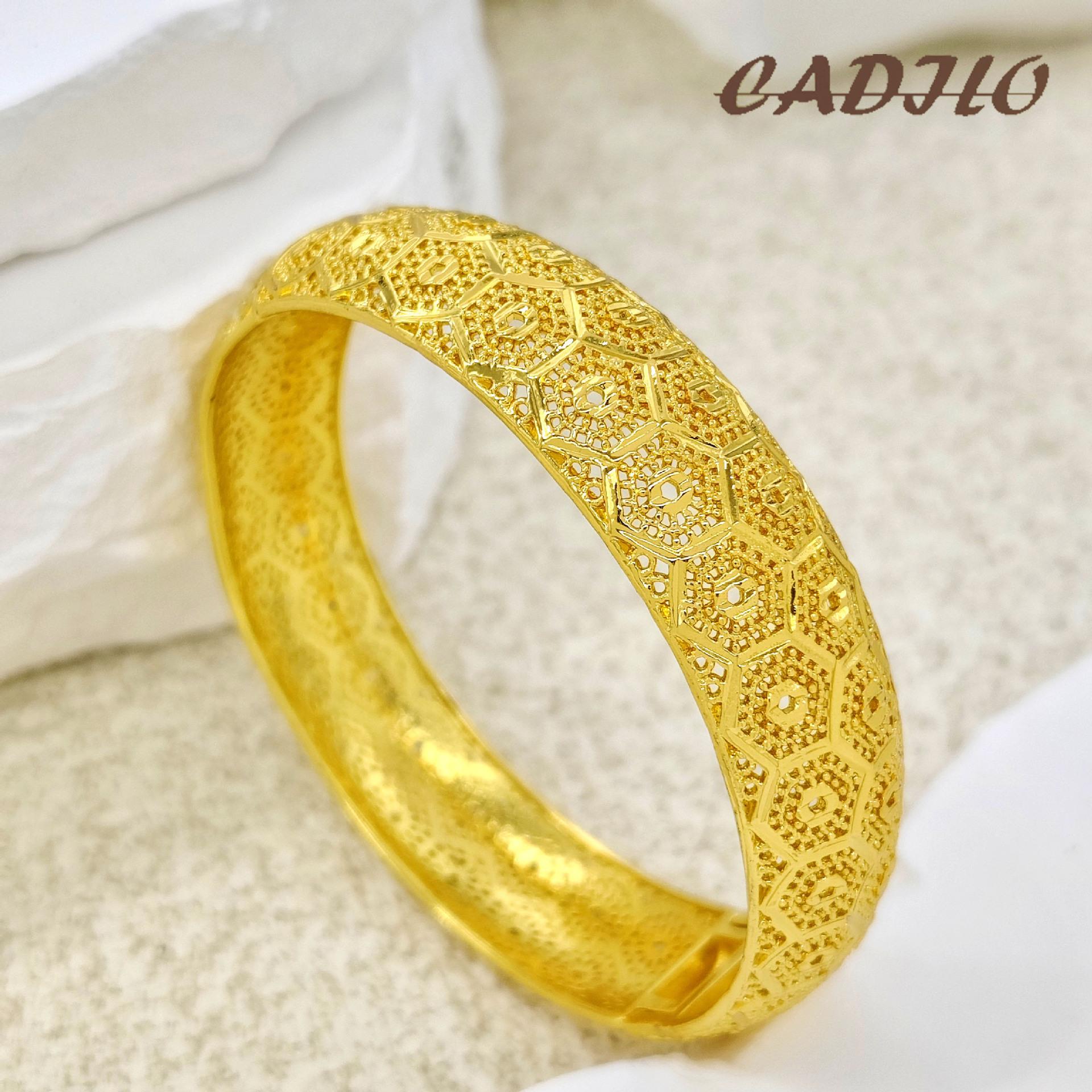 Cadilo Women's Fashion Bracelet Middle Eastern Dubai Bridal Bracelet Snap-On Design Women's Carved Hollow Bracelet