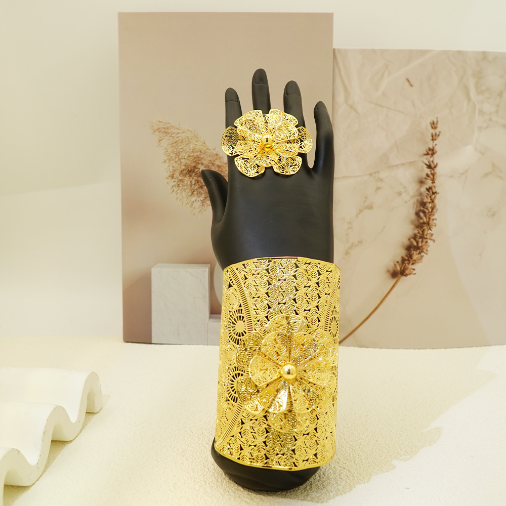 Cross-border Jewelry Middle East Dubai Hot Selling Bracelet Vietnam Bride Wedding Hollow Sauce Bracelet Two-piece Set