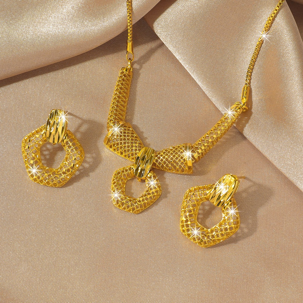 Middle East Dubai 24k copper gold plated two wedding suit Vietnamese sand geometric hollow necklace earrings wholesale