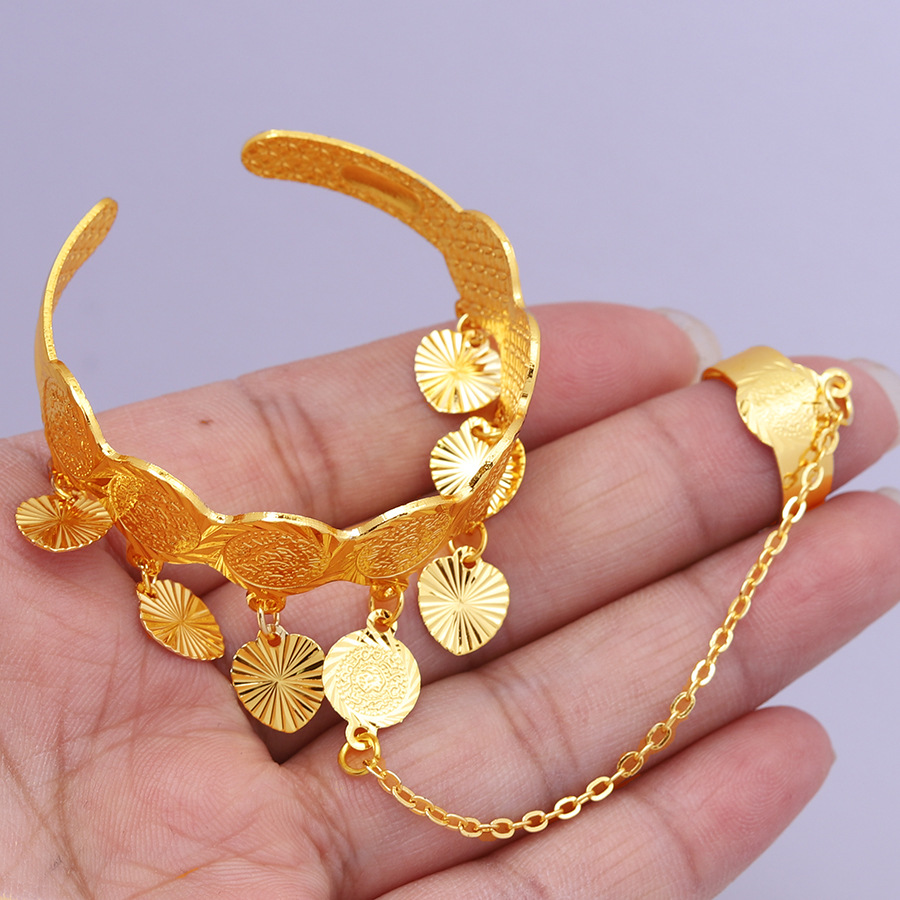 Cross Border Dubai Bride 24K Alloy Opening Bracelet Nigeria Arab Women's Wedding Gold Bracelet Wholesale