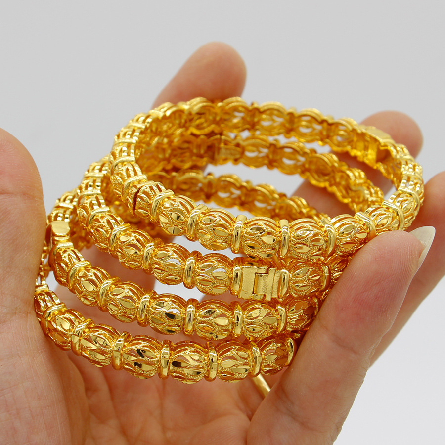 Middle East Cross Border One 24K Gold Plated Opening Hollow Bracelet Dubai Women Bride Wedding Jewelry
