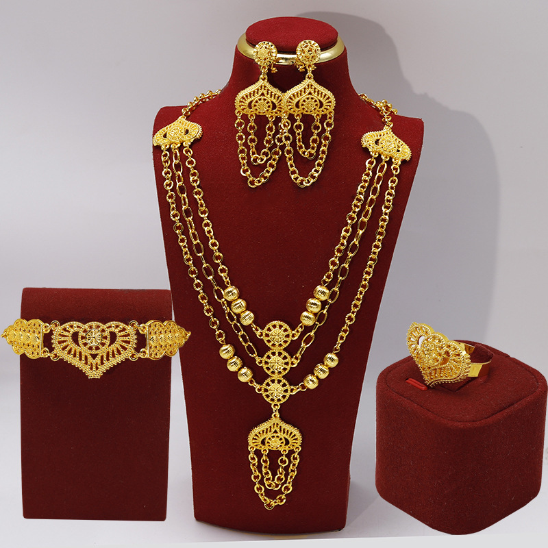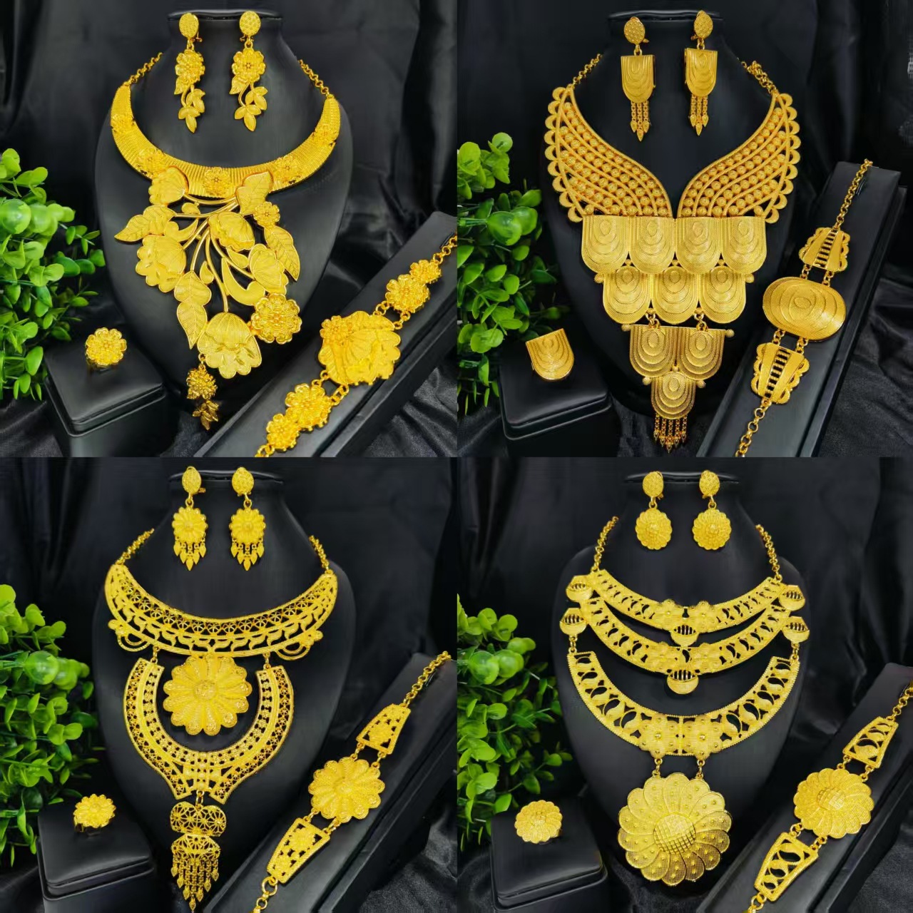 Dubai Cross-Border European and American Popular Jewelry for Women, Exaggerated Four-Piece Set of Necklaces, Earrings, Rings, Bracelets, 24K Wedding Present