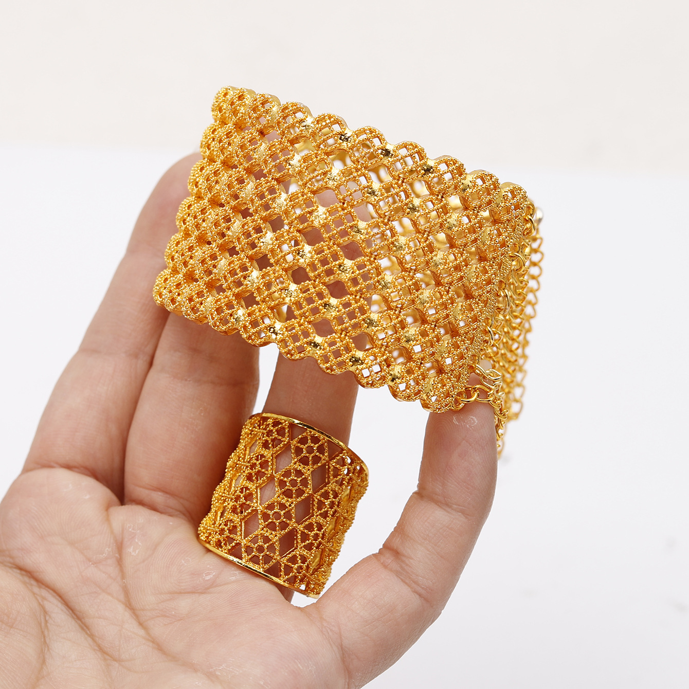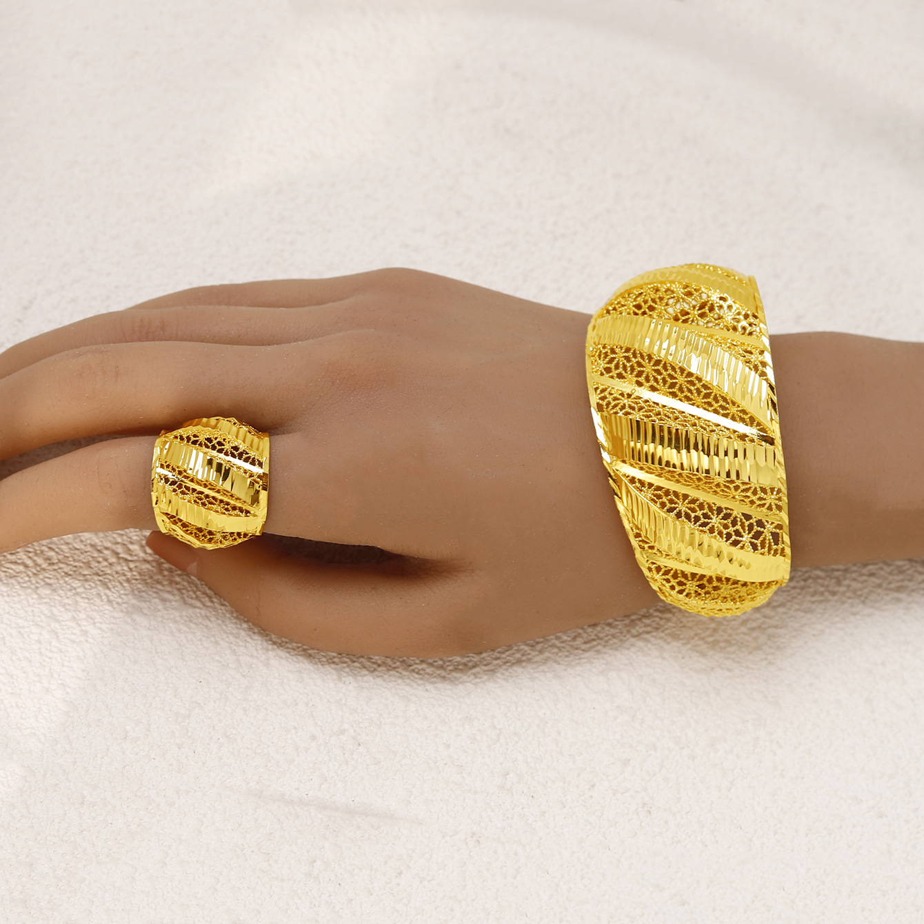 Cross-Border Middle East 24K Gold Plated Cut Out Bracelet Ring Set Dubai European and American Ladies Bridal Wedding Jewelry