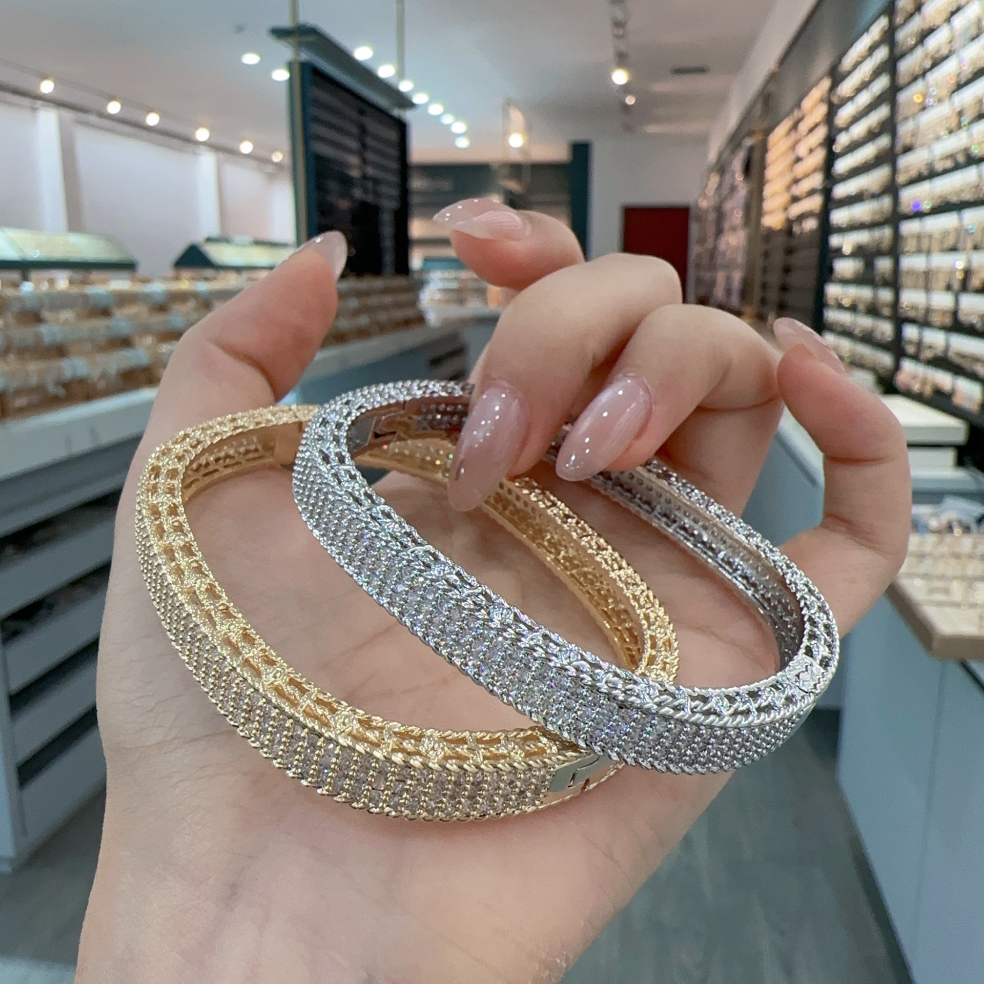 Hollow Full Zirconium Concealed Buckle Bracelet, Fashionable and Exquisite Versatile Accessories, Light Luxury Sparkling Bracelet, Middle Eastern Dubai Gold-Plated Jewelry