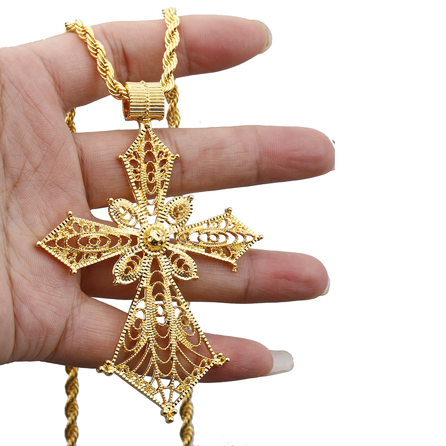 Cross-border Middle East Plated 24K Gold Cross Hollow Necklace Pendant suit Dubai European and American Bride Wedding Jewelry