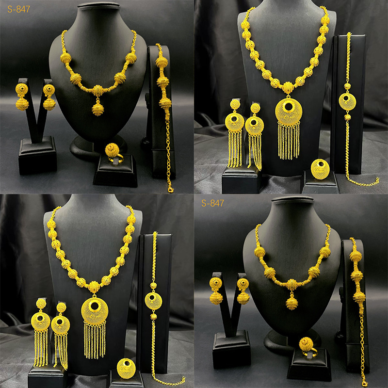 Dubai Bride 24K Gold Plated Necklace Bracelet Earrings Ring Jewelry Set African Ladies Jewelry Four-Piece Set
