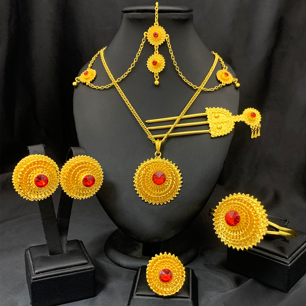 Cross-border Middle East Dubai 24K Gold Jewelry suit Vietnam Bride Necklace Earrings Ring Bracelet Hairpin Six-piece Set