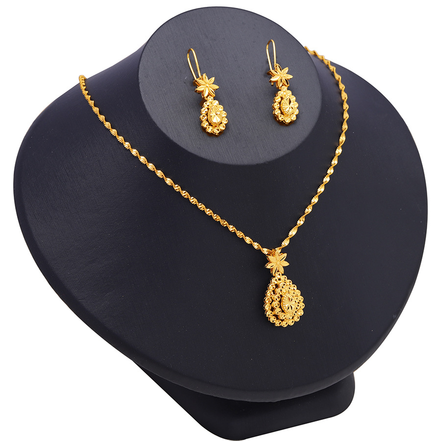 European and American Cross-border Middle East Arab 24K Gold-plated Wedding Jewelry Dubai Earrings NecKlace Set