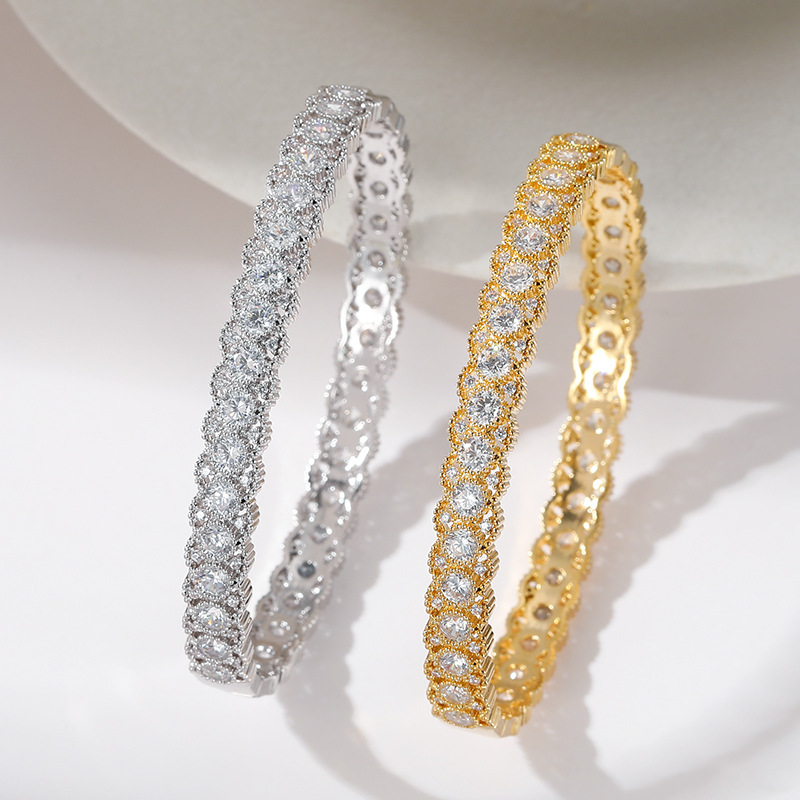 European and American Cross-Border Full-Circle Large Round Diamond Lace Bracelet Light Luxury Sparkling Diamond Cross-Border Wholesale Popular Dubai Gold-Plated Bracelet for Women