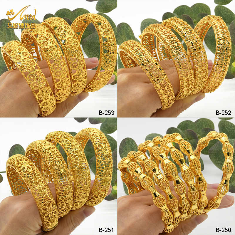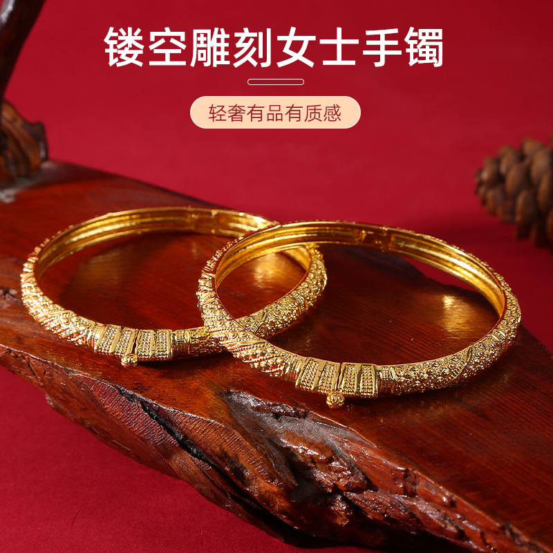 Dubai Women's Hollow Open C-Shaped Bracelet Indian Nigerian Vietnamese Wedding Sand Gold Bracelet Women's Daily