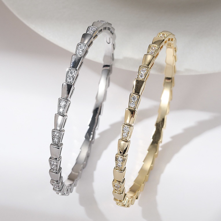 Light Luxury and High-End Snake-Shaped Bracelet, Full Circle Micro-Paved Zircon Super Flash Thin Bracelet, Fashionable and Versatile Dubai Gold-Plated Copper Bracelet