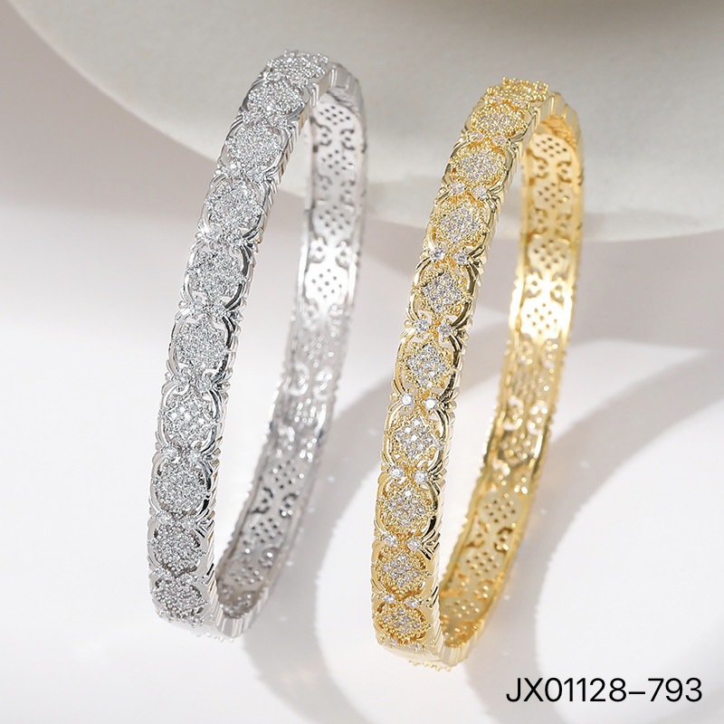 Cross-Border European and American Full-Circle Zircon Bracelet Double-Sided Zircon Bracelet Copper Gold-Plated Full Zircon Jewelry Wholesale Dubai Bracelet