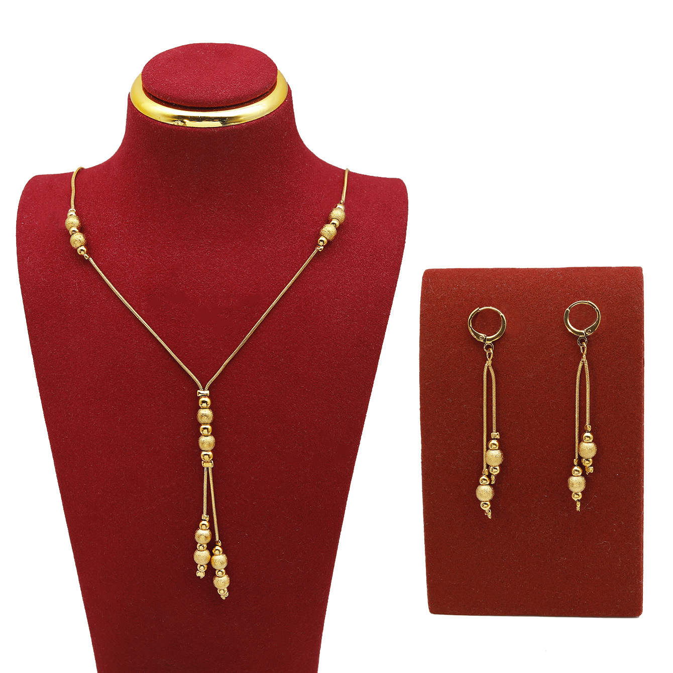 Cross-border Middle East Copper Plated 24K Lucky Bead Necklace Earrings suit Dubai European and American Bride Wedding Jewelry