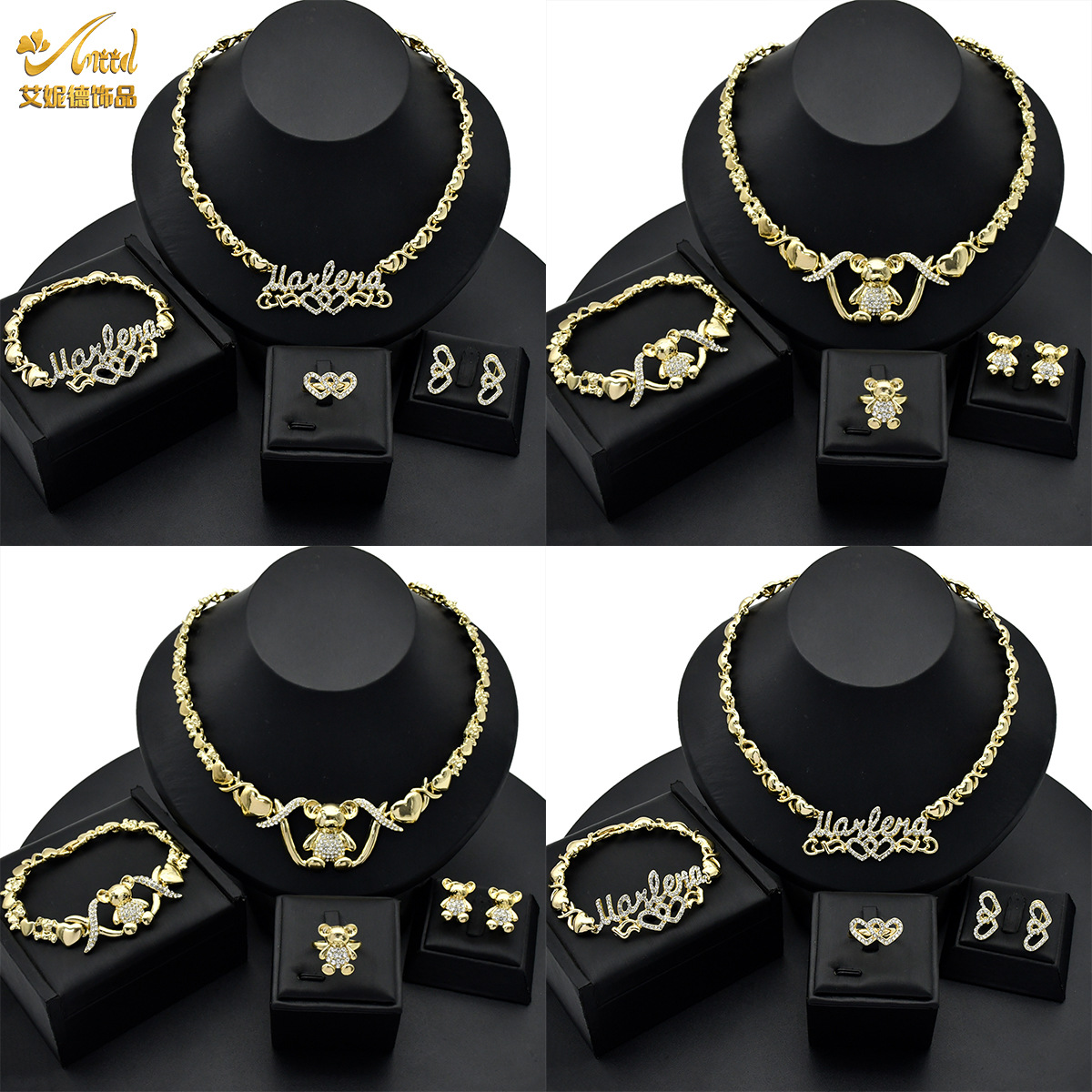 European and American Fashion 18K Jewelry Dubai XO Fashion Jewelry suit Necklace Earrings Bracelet Ring Jewelry Four-piece Set